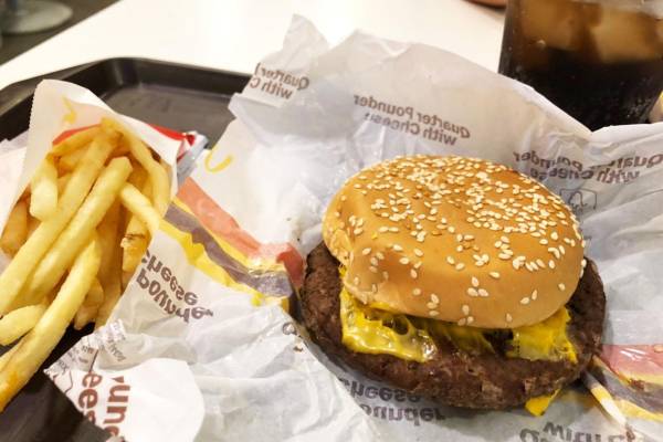 注文したメニュー:Quarter Pounder with Cheese バーガーセット(ポテトとドリンク付)